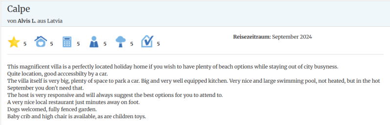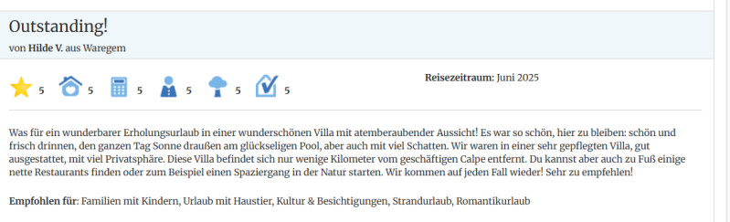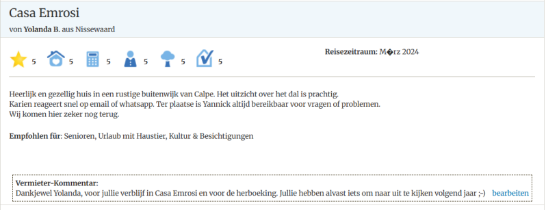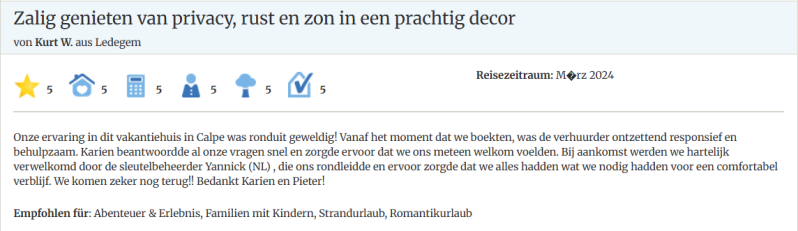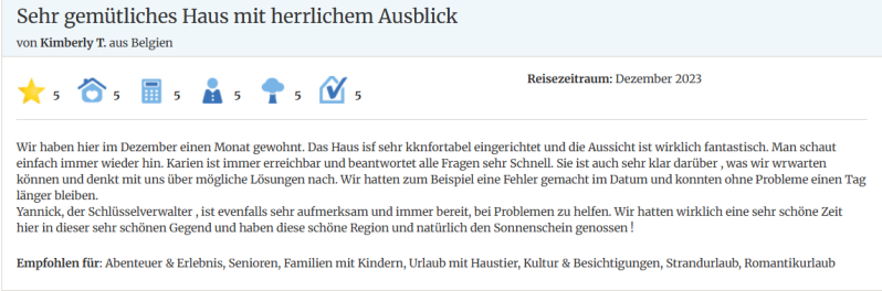 Hieronder vindt u een bloemlezing van alle reviews die wij ontvingen via de site Ferienhausemiete, waar ons vakantiehuis op te vinden is.